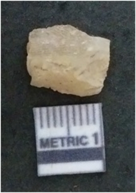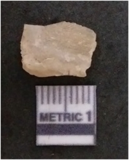 | Description / विवरण | The chalcedony flake is pale in colour and translucent in appearance. The piece has s harp flaked ends and a bulbous end due to flaking. The flake has a crypto-crystalline silica matrix. |