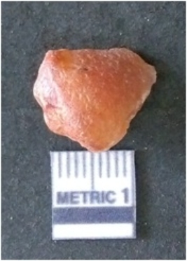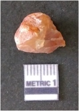 | Description / विवरण | It is carnelian flake red in color, with sharp flakes edges and a small bulb of percussion owing to knapping activity. The piece has sharp flaked edges and a crypto-crystalline matrix. |