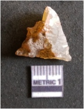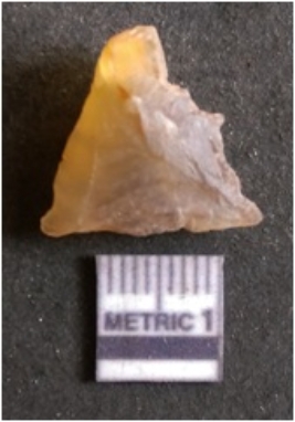 | Description / विवरण | It is chalcedony flake, translucent in appearance. The piece shows sharp pointed ends and flake scars on the surface as a result of flaking. The piece shows a bulb of percussion. |