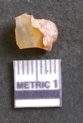 | Description / विवरण | It is a chalcedony flake, with a bulb of percussion on the ventral side. Cortex on one end. |