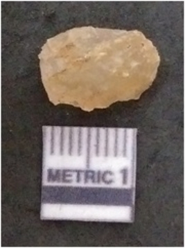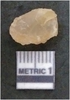 | Description / विवरण | The chalcedony flake is pale in colour and translucent in appearance. The piece has s harp flaked ends and a bulbous end due to flaking. The flake has a crypto-crystalline silica matrix. |