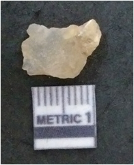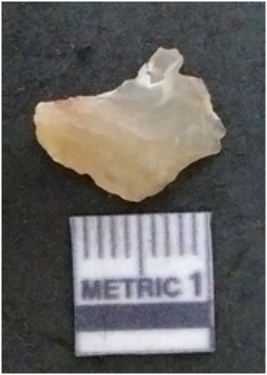 | Description / विवरण | The chalcedony flake is pale in colour and translucent in appearance. The piece has s harp flaked ends and a bulbous end due to flaking. The flake has a crypto-crystalline silica matrix. |