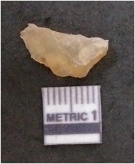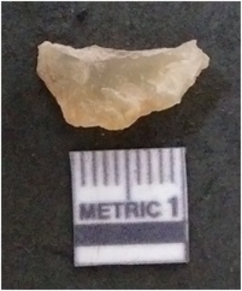 | Description / विवरण | The chalcedony flake is pale in colour and translucent in appearance. The piece has s harp flaked ends and a bulbous end due to flaking. The flake has a crypto-crystalline silica matrix. |