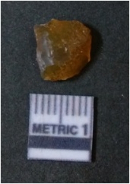| Description / विवरण | It is chalcedony flake, translucent in appearance. The piece shows sharp pointed ends and flake scars on the surface as a result of flaking. The piece shows a bulb of percussion. |