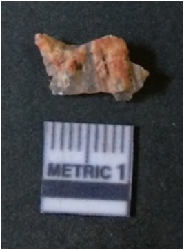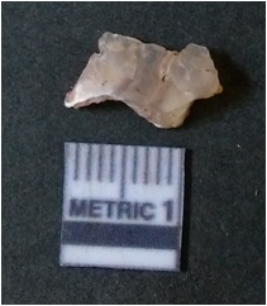 | Description / विवरण | The quartz flake has sharp flaked edges and pointed ends as a result of flaking. The piece is semi-transparent in nature with irregular fracture pattern. The piece is roughly triangular in shape and has a prominent bulb of percussion. |