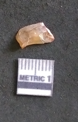 | Description / विवरण | It is a chalcedony flake, with a bulb of percussion on the ventral side. Cortex on one end. |