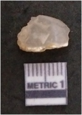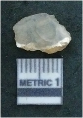 | Description / विवरण | The chalcedony flake is pale in colour and translucent in appearance. The piece has s harp flaked ends and a bulbous end due to flaking. The flake has a crypto-crystalline silica matrix. |