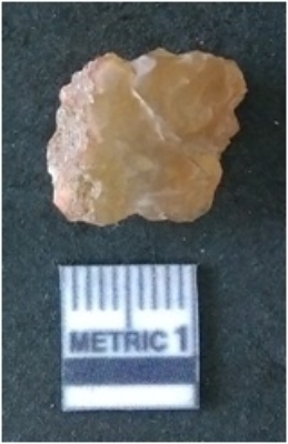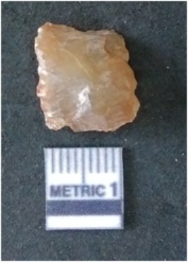 | Description / विवरण | It is chalcedony flake, translucent in appearance. The piece shows sharp pointed ends and flake scars on the surface as a result of flaking. The piece shows a bulb of percussion. |