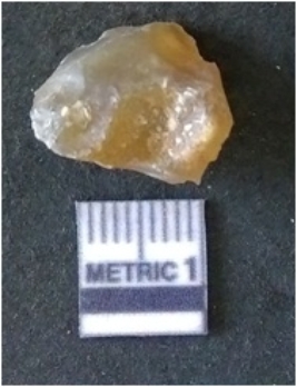| Description / विवरण | The agate piece is translucent in appurtenance, with angular flaked edges and a bulb of percussion. The piece shows flake scars on the surface. |