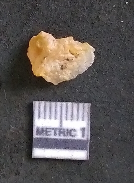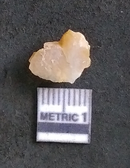 | Description / विवरण | It is a chalcedony flake, with a bulb of percussion on the ventral side. Cortex on one end. |