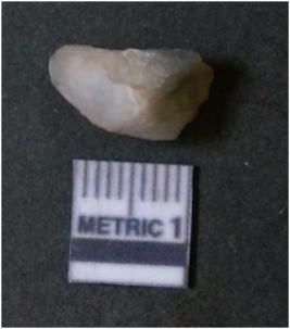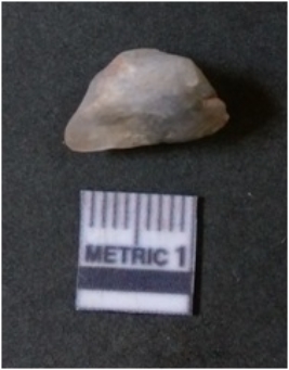 | Description / विवरण | The flake has irregular fracture pattern and sharp flaked edges as a result of lithic knapping activity. The piece is pale, with surfacial flake scars and a bulbous end. The flake is of smoky quartz variety, grayish in colour and translucent in appearance. |