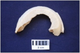 | Description / विवरण | A piece of shell bangle manufacturing waste. |