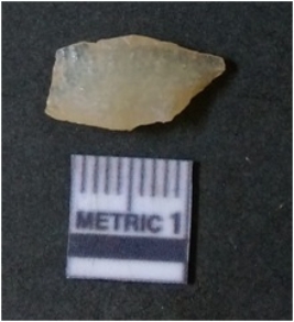 | Description / विवरण | It is chalcedony flake, translucent in appearance. The piece shows sharp pointed ends and flake scars on the surface as a result of flaking. The piece shows a bulb of percussion. |