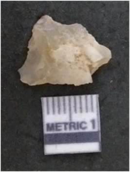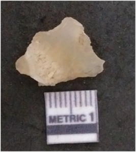 | Description / विवरण | The chalcedony flake is pale in colour and translucent in appearance. The piece has s harp flaked ends and a bulbous end due to flaking. The flake has a crypto-crystalline silica matrix. |