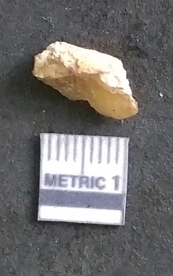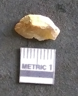 | Description / विवरण | It is a chalcedony flake, with a bulb of percussion on the ventral side. Cortex on one end. |