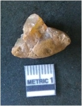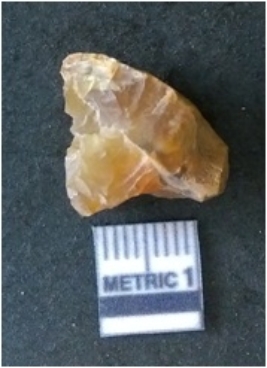 | Description / विवरण | It is chalcedony flake, translucent in appearance. The piece shows sharp pointed ends and flake scars on the surface as a result of flaking. The piece shows a bulb of percussion. |