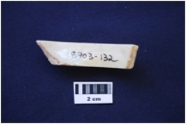 | Description / विवरण | A piece of shell bangle manufacturing waste. Glossy interior. |
