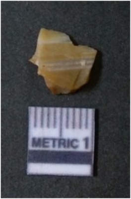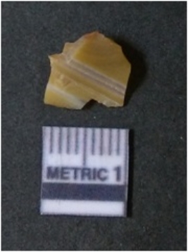 | Description / विवरण | It is chalcedony flake, translucent in appearance. The piece shows sharp pointed ends and flake scars on the surface as a result of flaking. The piece shows a bulb of percussion. |