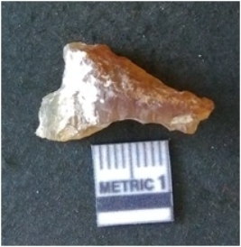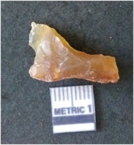 | Description / विवरण | It is chalcedony flake, translucent in appearance. The piece shows sharp pointed ends and flake scars on the surface as a result of flaking. The piece shows a bulb of percussion. |