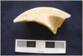 | Description / विवरण | Fragment of shell circlet has unfinished interior, worm hales and medium polished. |