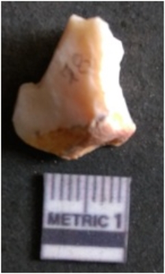 | Description / विवरण | The quartz flake has sharp flaked edges and pointed ends as a result of flaking. The piece is semi-transparent in nature with irregular fracture pattern. The piece is roughly triangular in shape and has a prominent bulb of percussion. |