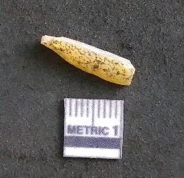 | Description / विवरण | It is a chalcedony flake, with a bulb of percussion on the ventral side. Cortex on one end. |