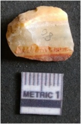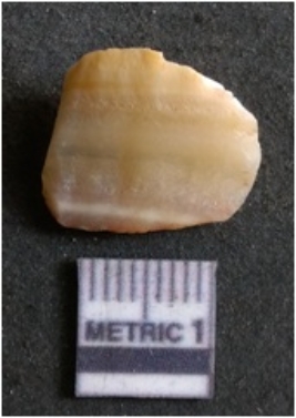 | Description / विवरण | It is chalcedony flake, translucent in appearance. The piece shows sharp pointed ends and flake scars on the surface as a result of flaking. The piece shows a bulb of percussion. |