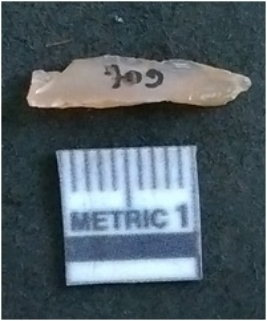 | Description / विवरण | The chalcedony flake is pale in colour and translucent in appearance. The piece has s harp flaked ends and a bulbous end due to flaking. The flake has a crypto-crystalline silica matrix. |