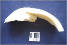 | Description / विवरण | Fragment of shell circlet has partly irregular interior, medium polished and rough rectangular cross-section. |