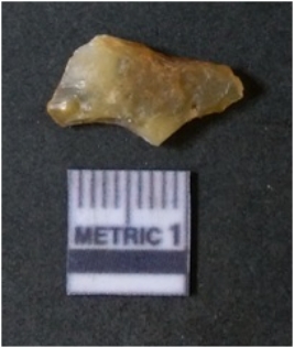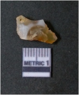 | Description / विवरण | It is chalcedony flake, translucent in appearance. The piece shows sharp pointed ends and flake scars on the surface as a result of flaking. The piece shows a bulb of percussion. |