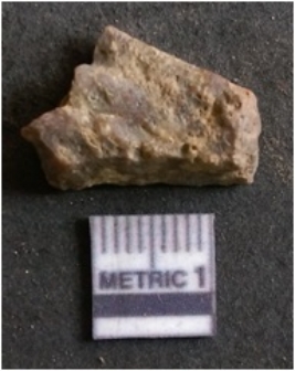 | Description / विवरण | The chert piece is dark in color, with a prominent bulb of percussion and sharp flaked edges. The piece is a part of lithic debitage or raw material for lithic knapping. The piece shows clear ripple marks and bulb of percussion. |