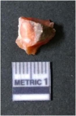 | Description / विवरण | The flake has irregular fracture pattern and sharp flaked edges as a result of lithic knapping activity. The piece is pale, with surfacial flake scars and a bulbous end. The quartz flake is rosy white in colour. |