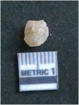 | Description / विवरण | The quartz flake has irregular fracture pattern and sharp flaked edges as a result of lithic knapping activity. The piece is pale, with surfacial flake scars and a bulbous end. |