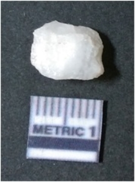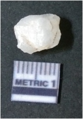 | Description / विवरण | The milky quartz flake has irregular fracture pattern and sharp flaked edges as a result of lithic knapping activity. The piece is pale, with surfacial flake scars and a bulbous end. The flake is white in color. |