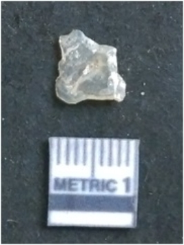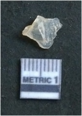 | Description / विवरण | The quartz flake has irregular fracture pattern and sharp flaked edges as a result of lithic knapping activity. The piece is pale, with surfacial flake scars and a bulbous end. |