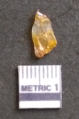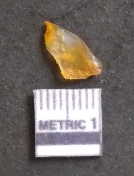 | Description / विवरण | It is a chalcedony flake, with a bulb of percussion on the ventral side. Cortex on one end. |