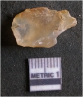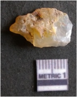 | Description / विवरण | It is chalcedony flake, translucent in appearance. The piece shows sharp pointed ends and flake scars on the surface as a result of flaking. The piece shows a bulb of percussion. |