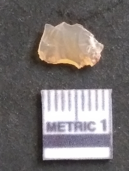 | Description / विवरण | It is a chalcedony flake, with a bulb of percussion on the ventral side. Cortex on one end. |