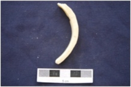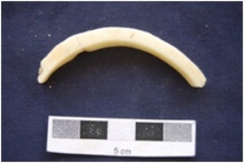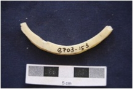 | Description / विवरण | Fragment of shell circlet has worm holes, medium polished and square cross-section. |