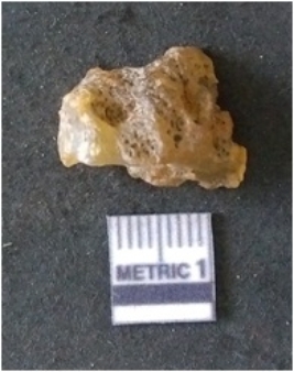 | Description / विवरण | It is chalcedony flake, translucent in appearance. The piece shows sharp pointed ends and flake scars on the surface as a result of flaking. The piece shows a bulb of percussion. |