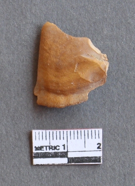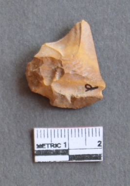 | Description / विवरण | The flake chert has a point and a bulb of percussion. |
