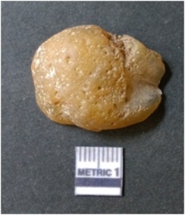 | Description / विवरण | The lithic piece is a detached piece from the core and the flat surface with flake scars is evident as the result of core reduction process. Some part of cortex is visible on the surface. |