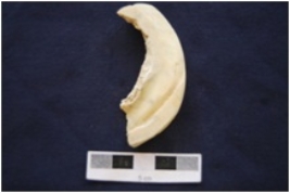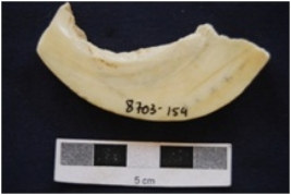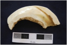 | Description / विवरण | Fragment of shell circlet has marks, partly irregular interior, rough square cross-section and medium polished. |