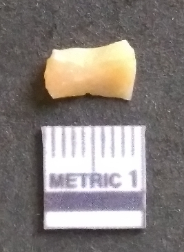 | Description / विवरण | It is a chalcedony flake, with a bulb of percussion on the ventral side. Cortex on one end. |
