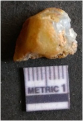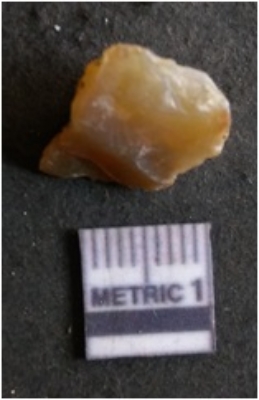 | Description / विवरण | It is chalcedony flake, translucent in appearance. The piece shows sharp pointed ends and flake scars on the surface as a result of flaking. The piece shows a bulb of percussion. |