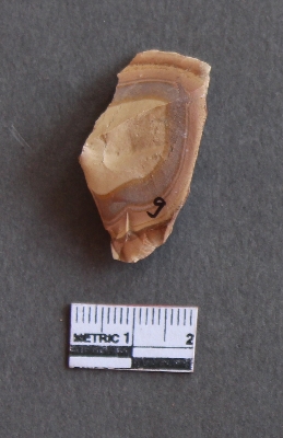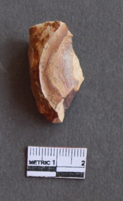 | Description / विवरण | The chert flake has a cortex and bulbous end. |