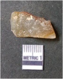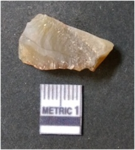 | Description / विवरण | The lithic piece is a detached piece from the core and the flat surface with flake scars is evident as the result of core reduction process. Some part of cortex is visible on the surface. |