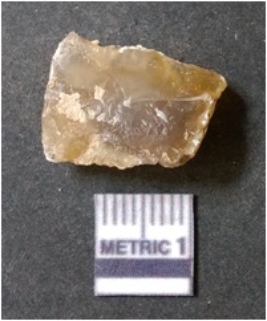 | Description / विवरण | The lithic piece is a detached piece from the core and the flat surface with flake scars is evident as the result of core reduction process. Some part of cortex is visible on the surface. |