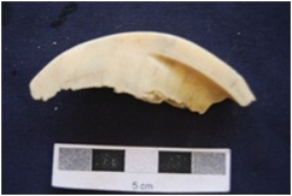 | Description / विवरण | Fragment of shell circlet has partly irregular interior, medium polished and rough rectangular cross-section. |