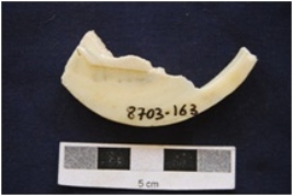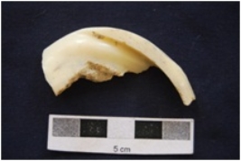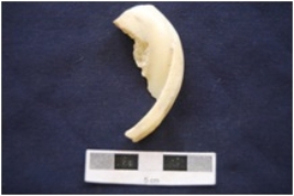 | Description / विवरण | Fragment of shell circlet has cut marks, partly irregular interior rough rectangular cross-section and medium polished. |